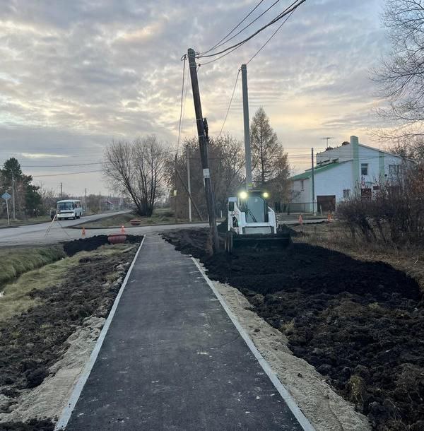 В селе Азово полным ходом идут работы по созданию современной и безопасной пешеходной инфраструктуры. В рамках реализации государственной программы «Комплексное развитие сельских территорий» при поддержке Правительства Омской области на улице Советской продолжается устройство нового тротуара.